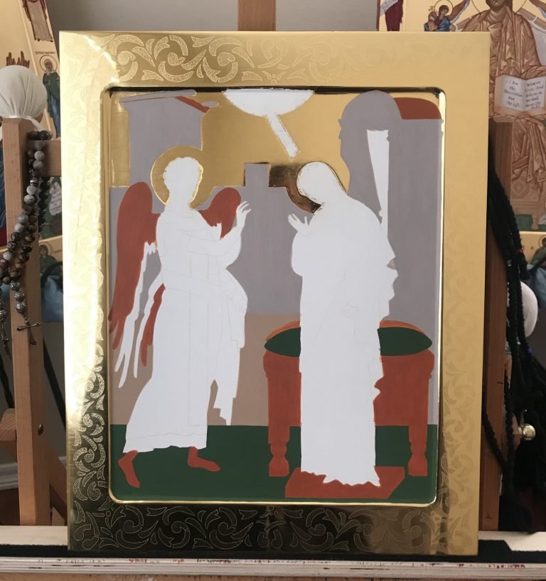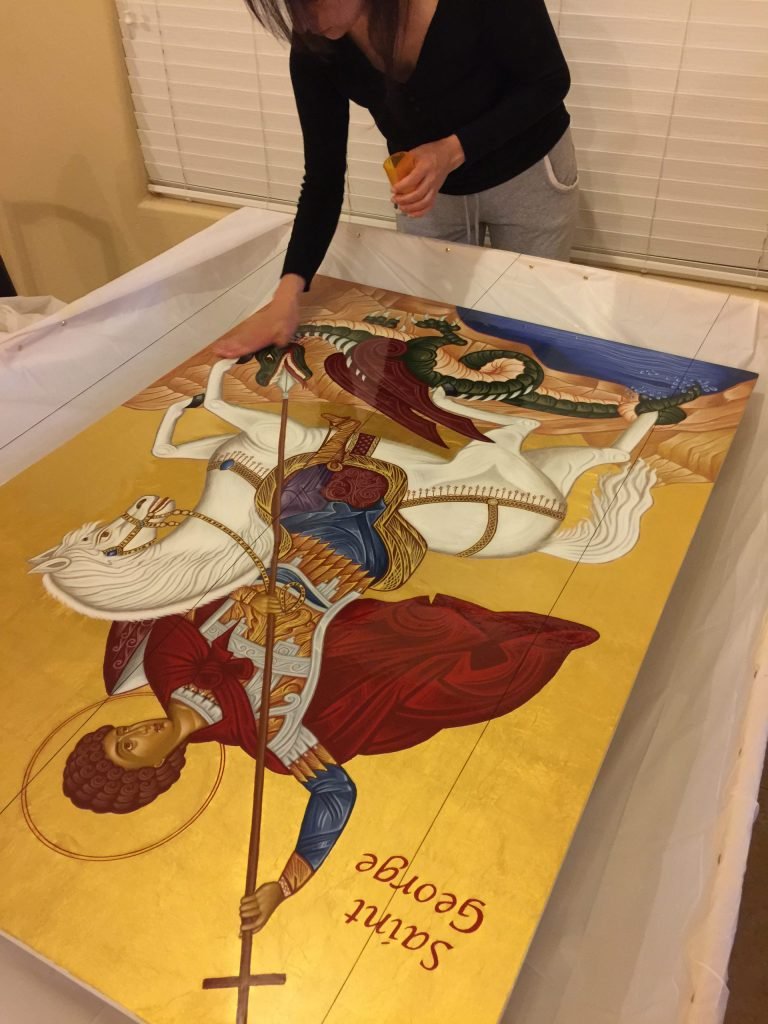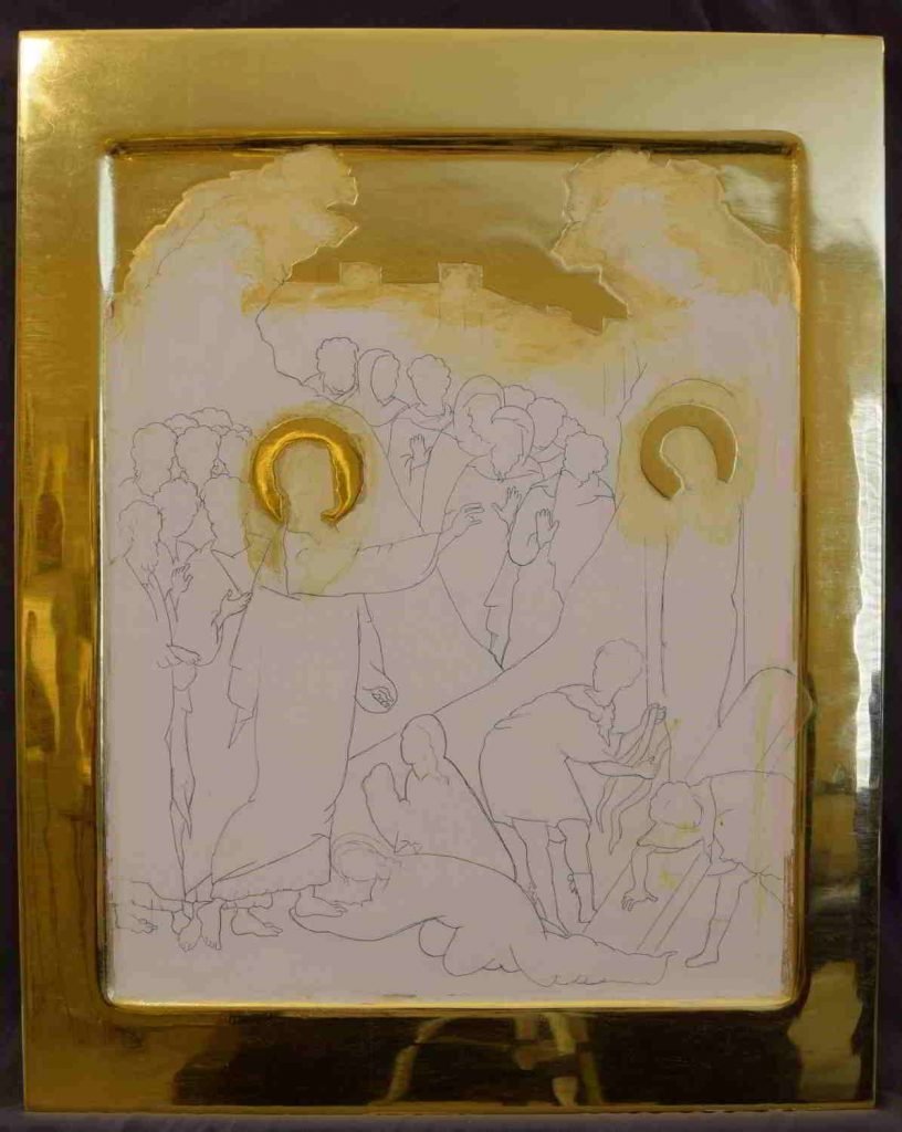 – The process of writing the icon begins using egg tempera and natural powder pigments.